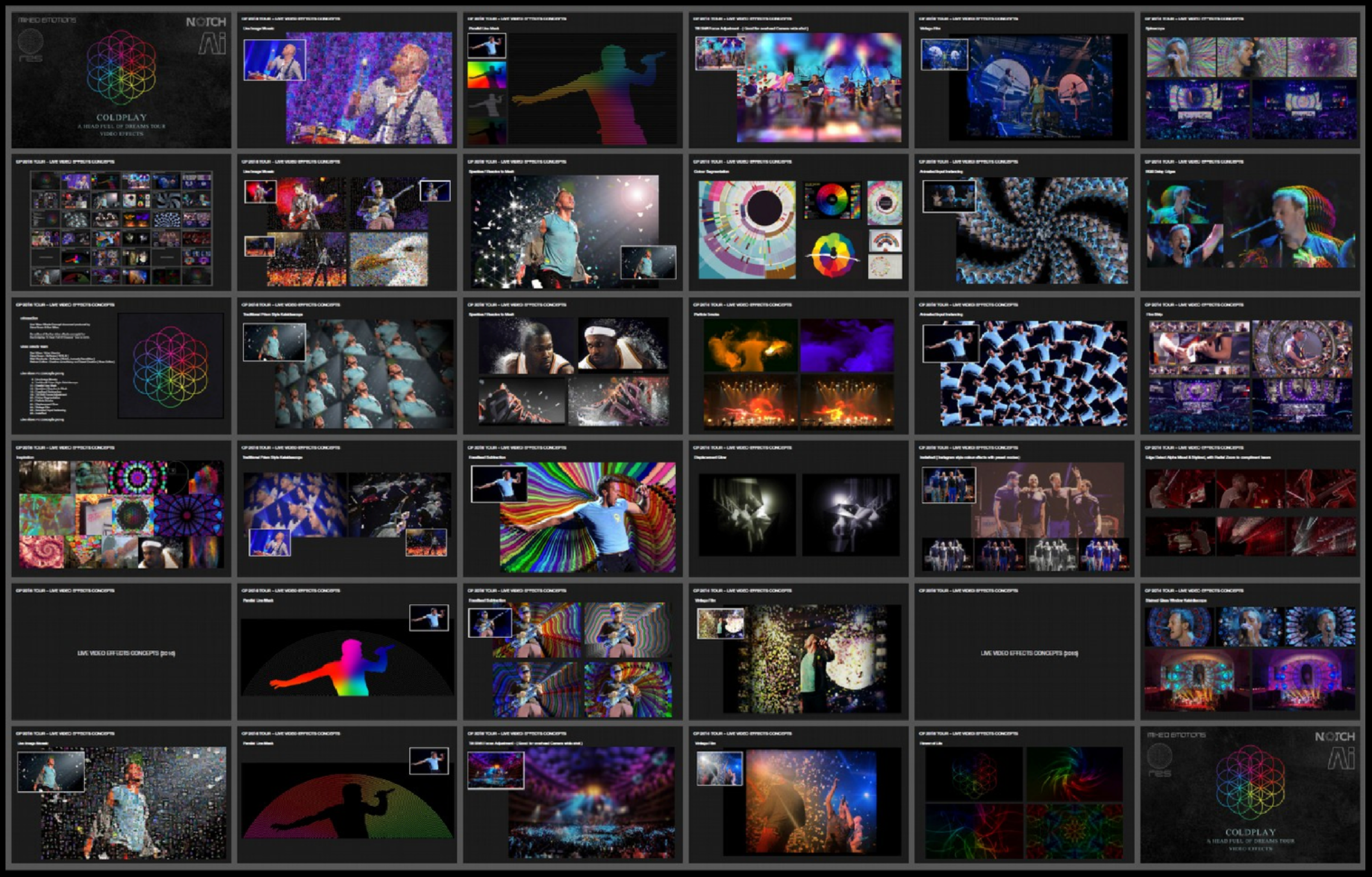 RES began to work with Coldplay in 2014 around the time of Ghost Stories (their sixth studio album). We worked with Ben Miles (Video Director for Coldplay) on creating a full 360' cylinder of projection mapping (including the ceiling). A truly immersive environment, utilising around 40 Panasonic HD projectors. The show features on the 'The Ghost Stories Live' DVD.